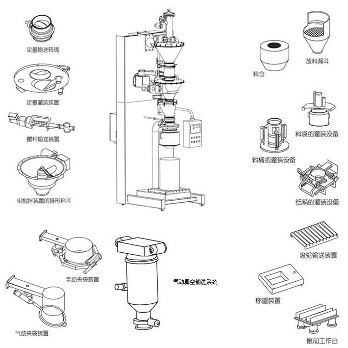 bull; 廣泛用于制藥、食品、化工行業(yè)的散裝物料的輸送與定量灌裝。